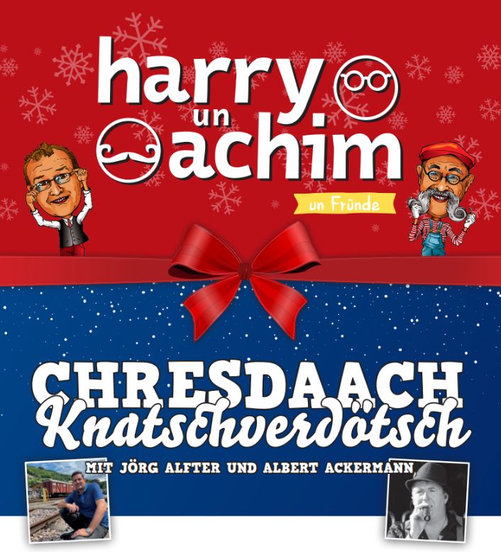 Zum ersten Mal präsentieren wir, die Weihnachtsshow von Harry & Achim. Mit dabei: Jörg Alfter sowie Albert Ackermann und zusätzlich noch ein Überraschungsgast. Auch uns wurde noch nichts verraten. Also seien Sie gespannt!